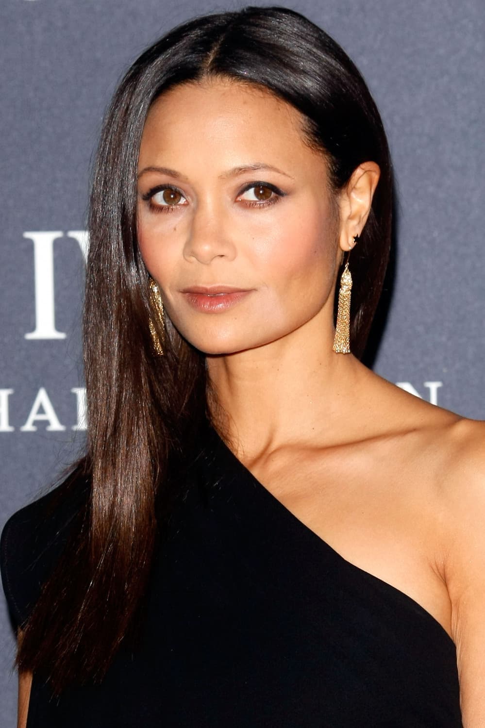 Para quienes buscaban alguna idea de peinado fácil con pelo suelto, aquí vemos una de las opciones más fáciles de todas: el pelo suelto con raya al medio. ¿Sabías que este tradicional peinado está de moda? Puedes darle un toque sexy al peinado moviendo tu melena hacia un hombro como vemos aquí en Thandie Newton. ¡Me encanta cómo se ve!