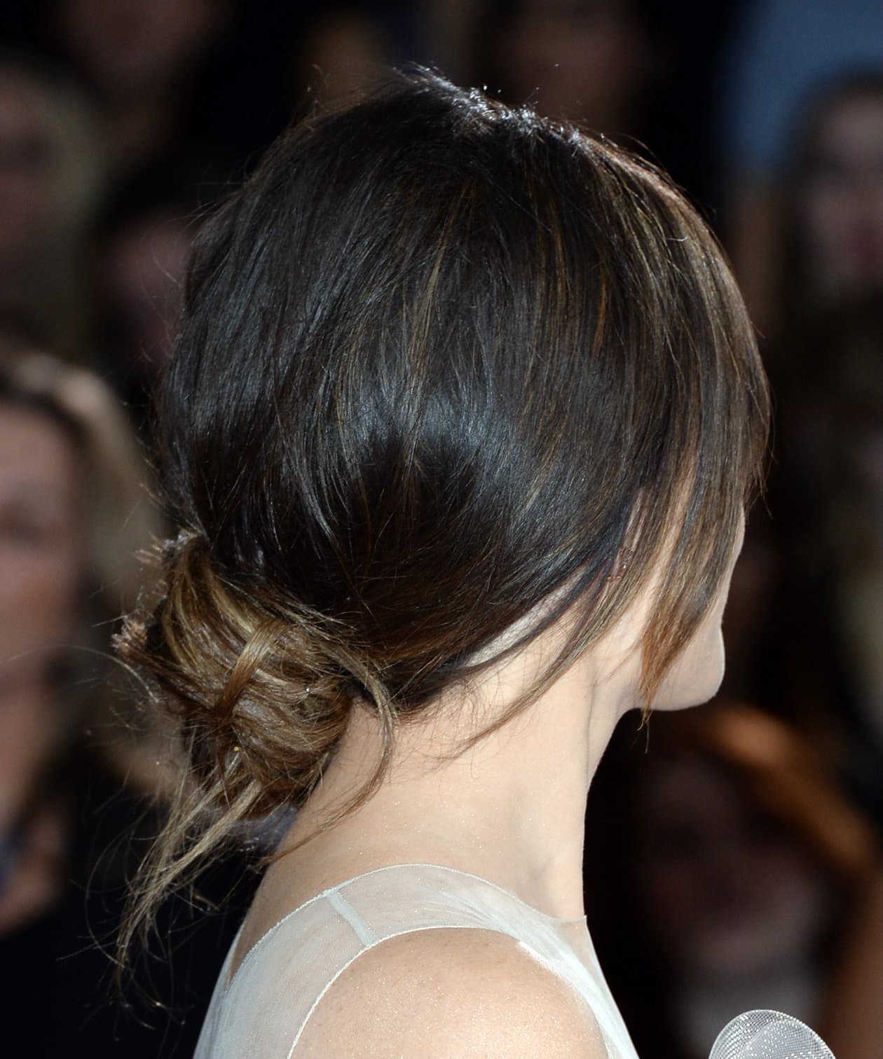 Los moños son los peinados para la noche por excelencia. Actualmente, están de moda esos que no tiene un aspecto muy bien peinado. Si quieres, puedes optar por un moño a la altura de la nuca, haciendo una coleta, enrolando y colocando algunas horquillas.