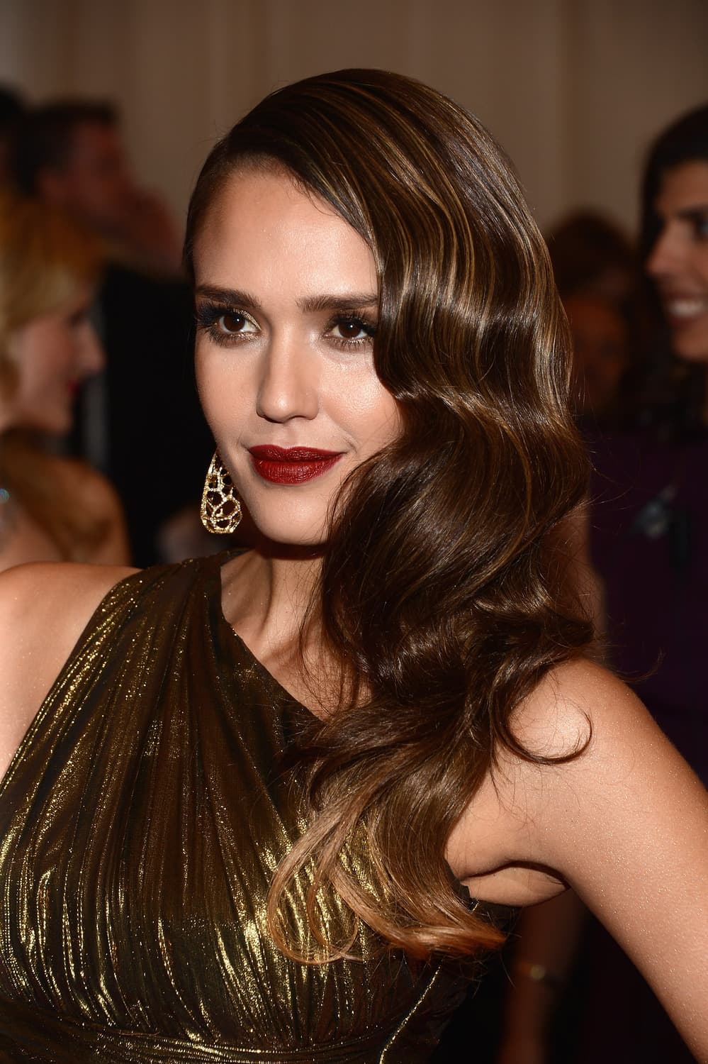 En esta ocasión con un peinado retro para cabello largo hermoso y sexy, típico de los años 40-50: pelo suelto con ondas y bastante volumen hacia un solo costado. Uno de mis preferidos de esta lista.