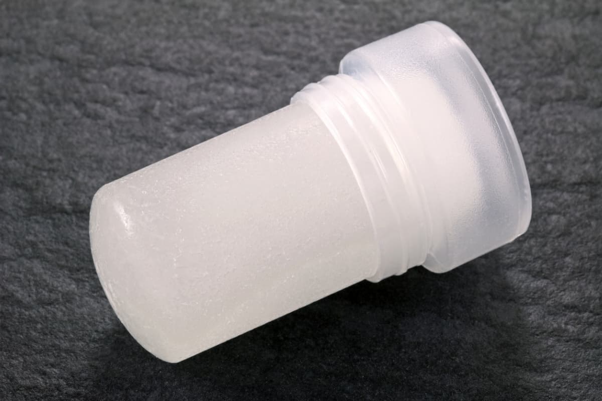 Se trata de un cristal transparente y sin olor que tiene propiedades antisépticas y astringentes. Esto quiere decir que evita que se acumulen bacterias, al mismo tiempo que provoca que la piel se contraiga para reducir sus secreciones.