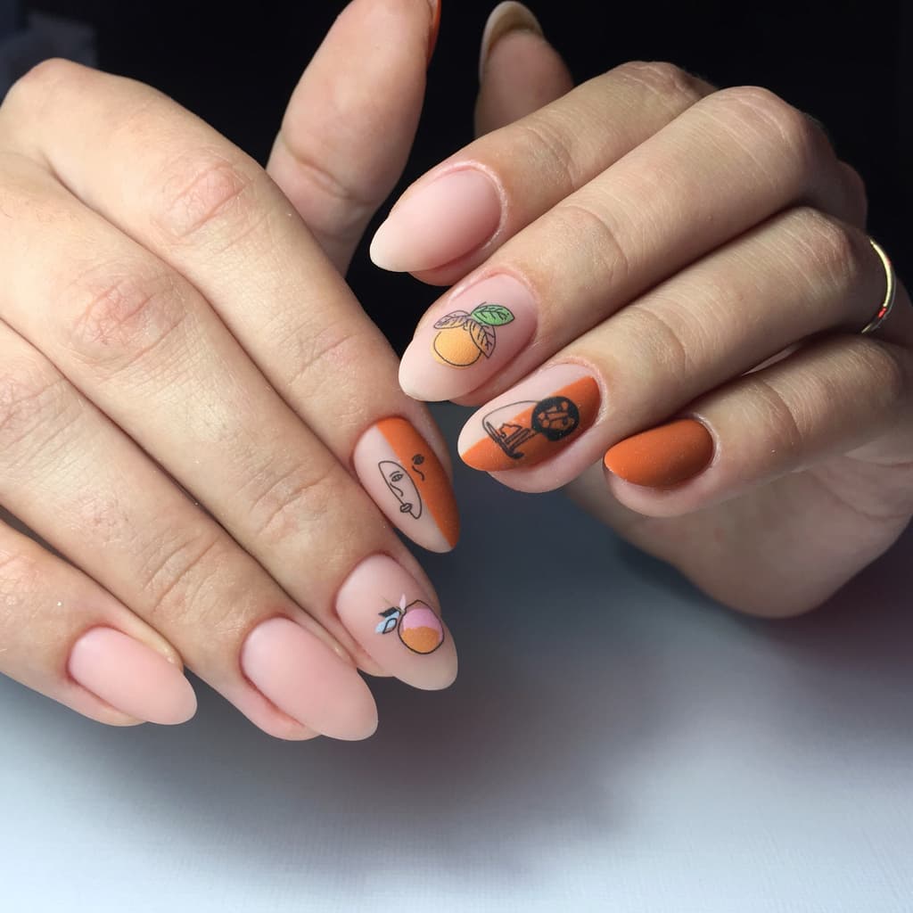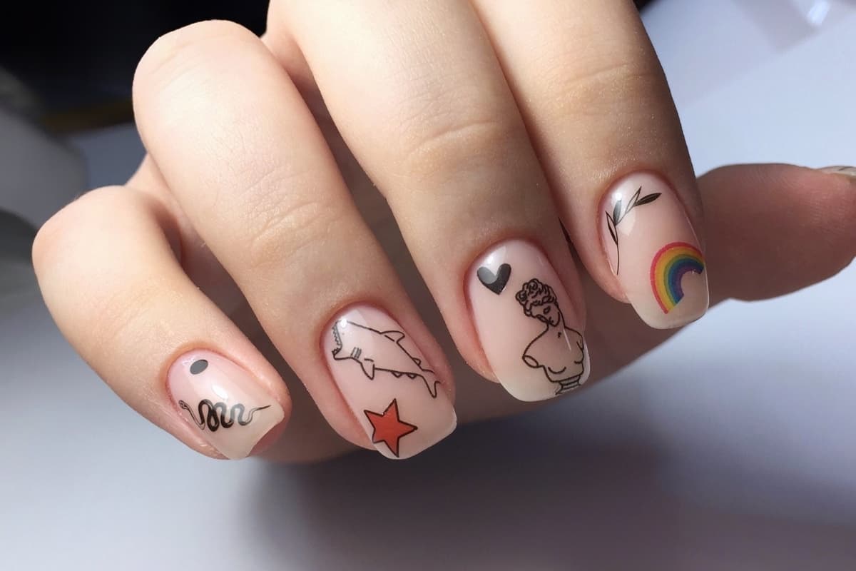 Una opción es pintar manchitas de diferentes colores y hasta temáticas en cada uno de tus dedos, respetando la base nude.