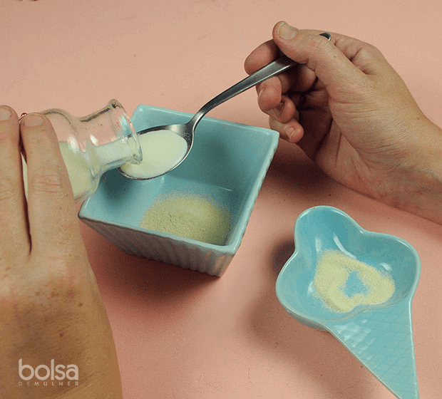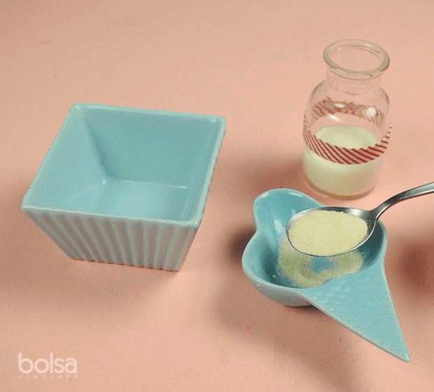 Materiales: 1 medida de gelatina sin sabor, 1 medida de leche y un pincel para aplicar la cera.