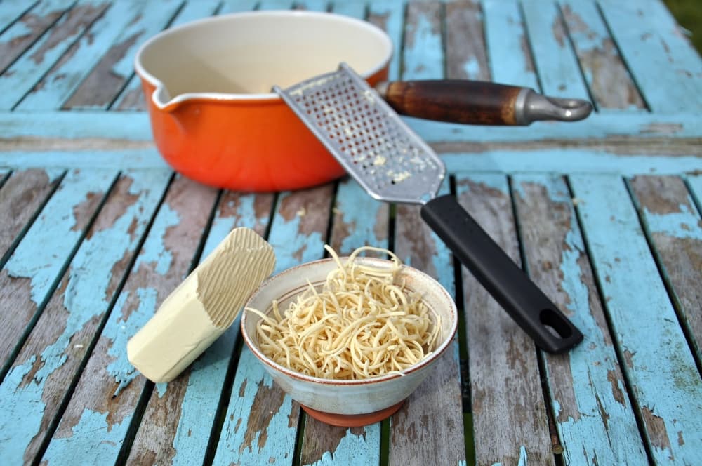 Pasa el jabón por un rallador, para obtener pedazos muy pequeñitos. Colócalos sobre un tazón que soporte el calor del baño maría.