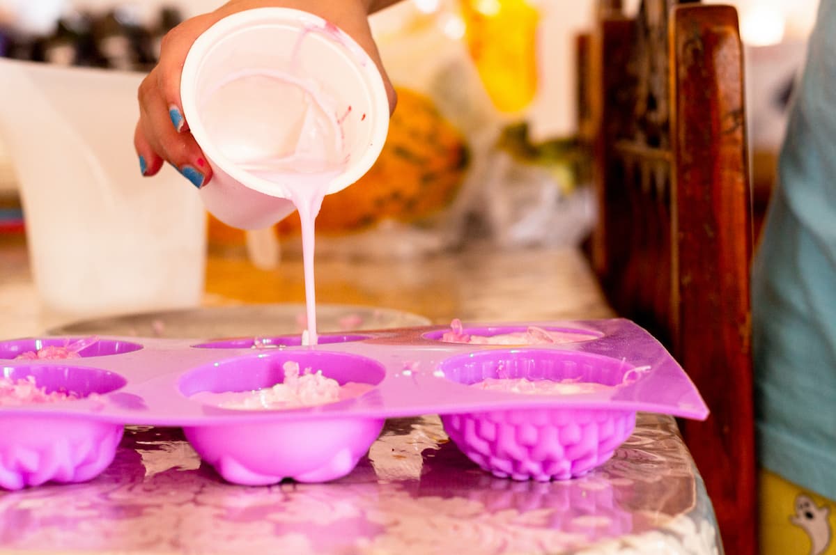 Vacía la mezcla de tus jabones en moldes del tamaño y forma que prefieres y deja secar. Una vez que se solidifiquen, solo tendrás que desmontarlos para poder utilizarlos.