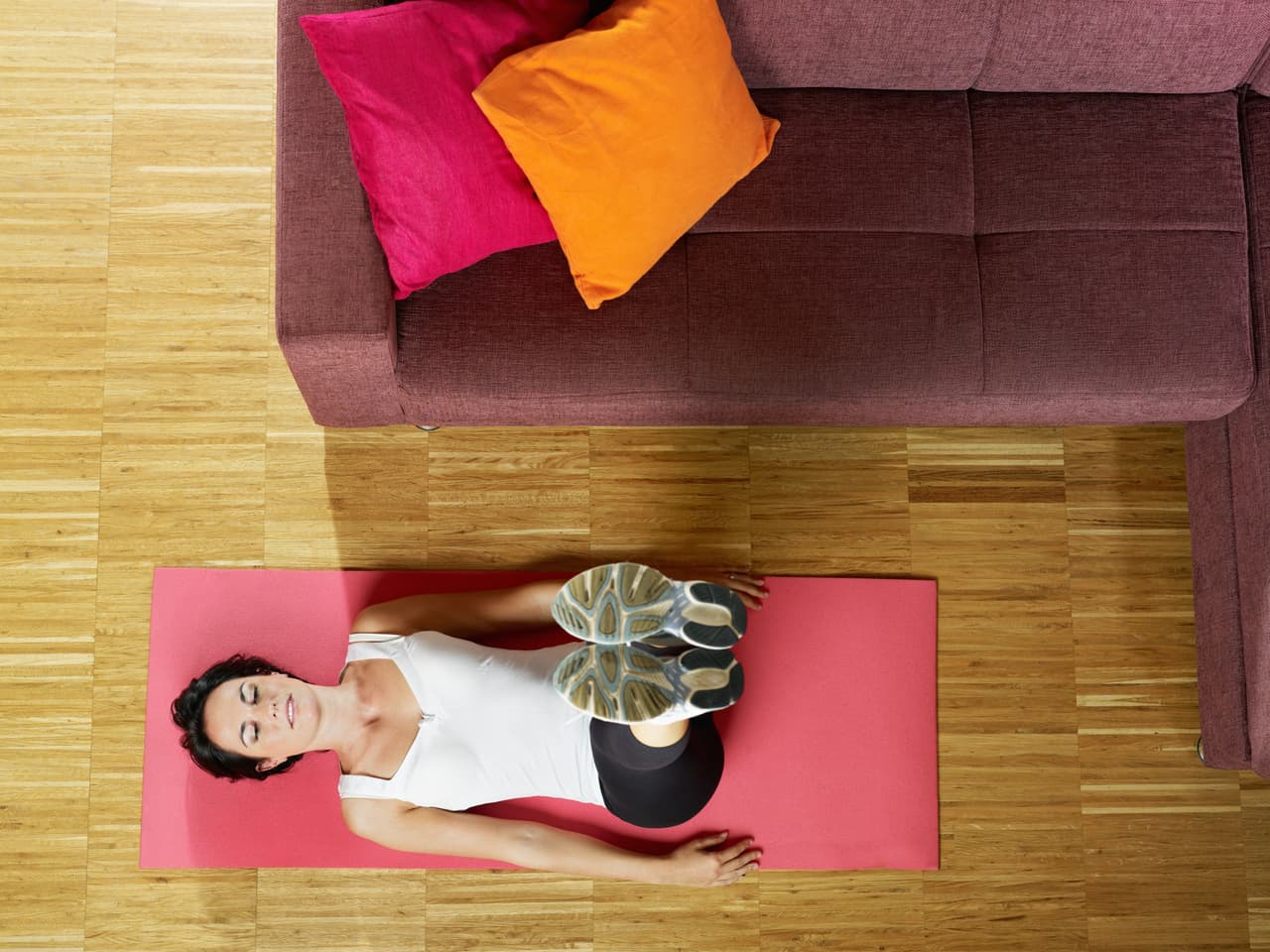 Lleva las rodillas al pecho para descansar y ya está lista tu rutina de abdominales.