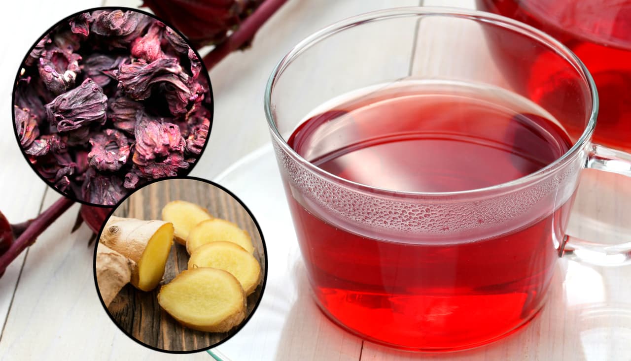 Calienta el agua y añade las hojas de té verde, las flores de hibisco y las ralladuras de jengibre y limón. A continuación, filtralo y sírvelo.