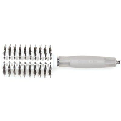 Lo ideal es optar por un cepillo redondo de cerámica con ventilación ya que la cerámica retiene y conduce el calor de manera uniforme mientras que las rejillas de ventilación promueven un mayor flujo de aire y secan el pelo más rapidamente. Puedes probar el cepillo de Olivia Garden que seguro te dará un gran resultado.
