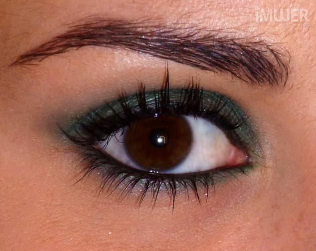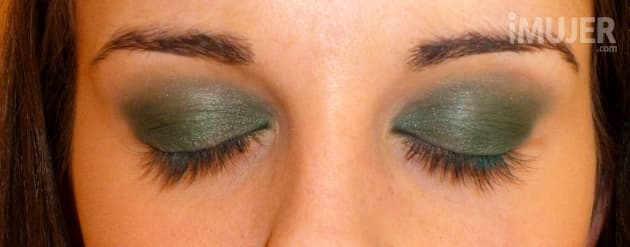 Una vez realizado el paso, aplicaremos una sombra verde por encima del lápiz. Este paso nos ayudará a intensificar el color, a que el maquillaje dure más y no se formen pliegues.