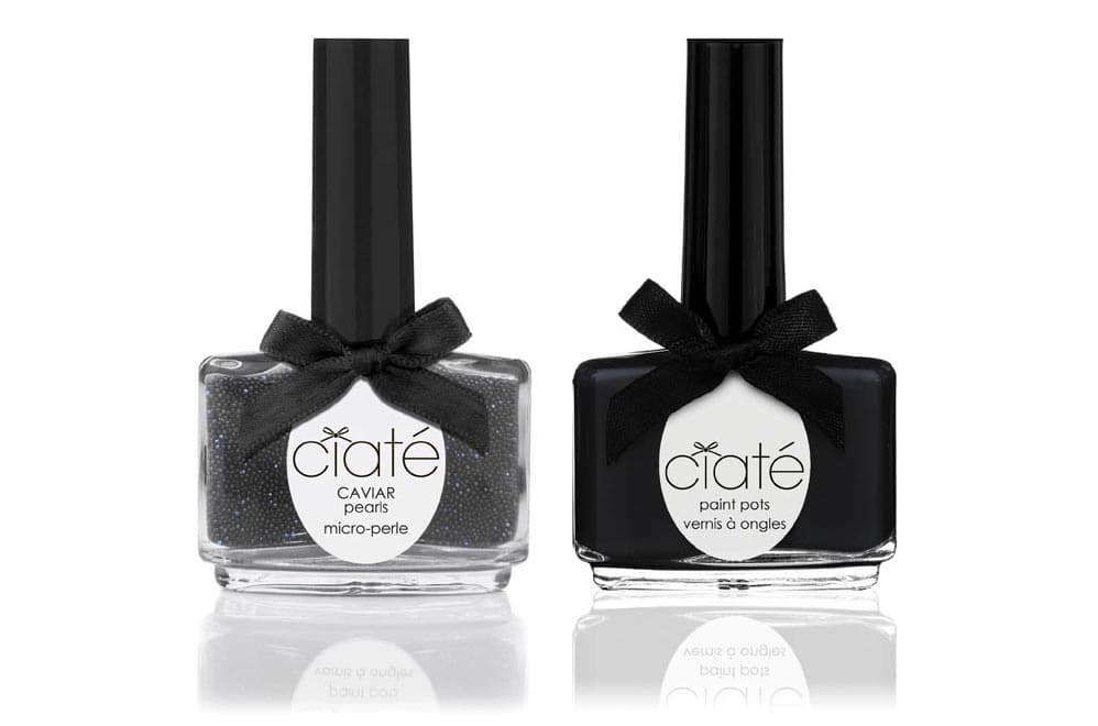 Para llevar a cabo estos diseños, es necesario conseguir esmaltes Ciaté en un pack de dos; un frasco con el esmalte que se utilizará de base y otro frasco para las perlas de caviar.