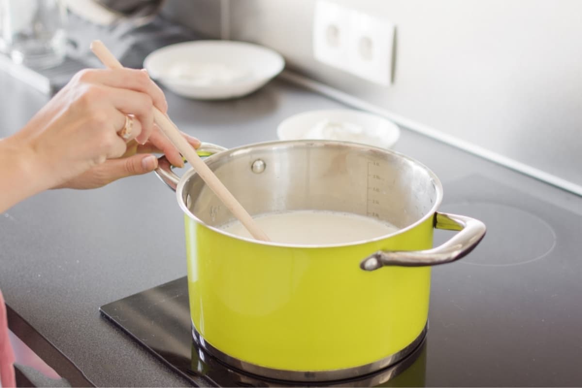 Revuelve la mezcla por alrededor de 15 minutos con la estufa en su nivel más bajo, hasta que se forme un líquido homogéneo.