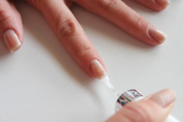 Aplícate un poco de esmalte de base neutra. De ser necesario, coloca dos manos para que el esmalte continúe fresco mientras extiendes las plumas sobre las uñas.