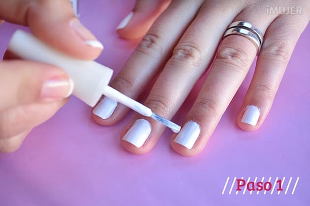 Primero que nada, pinta tus uñas con el esmalte blanco. Si deseas obtener buenos resultados, deberás tener paciencia y mucho cuidado.