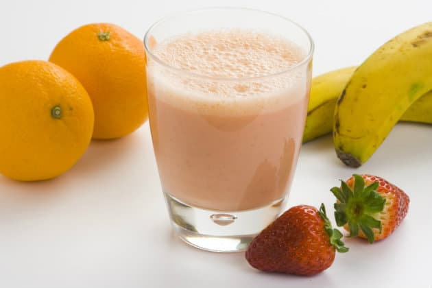 Pelamos las bananas y batimos con las fresas en la licuadora, agregamos luego el jugo de las naranjas. En una jarra de vidrio llevamos al refrigerador al menos una hora antes de servir frío. Es un jugo perfecto para el desayuno.