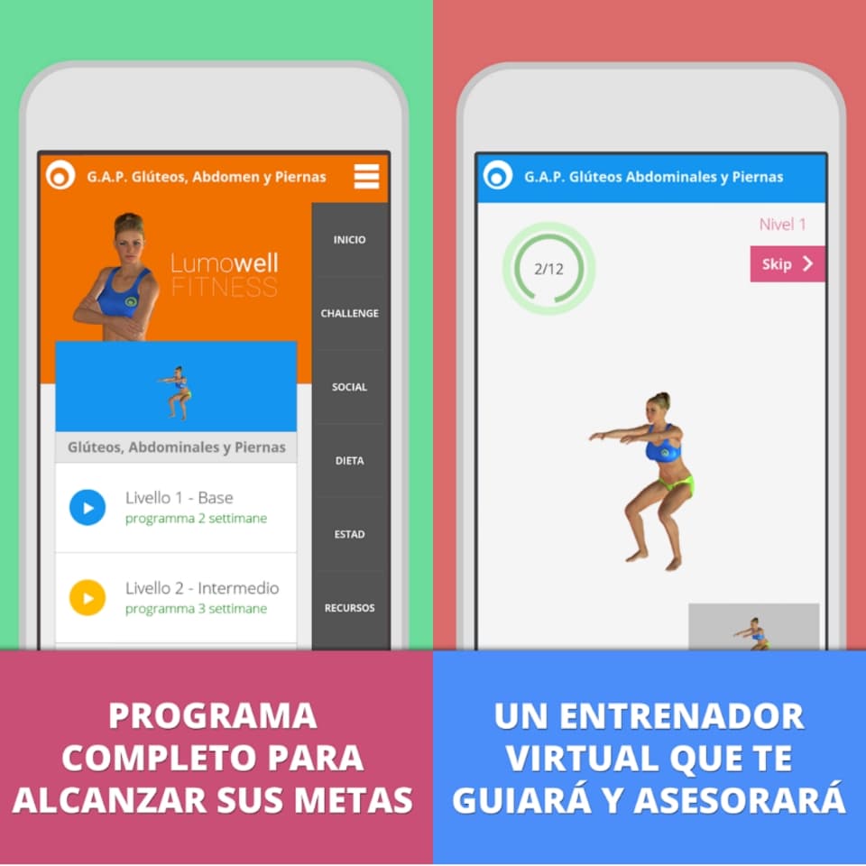 En esta aplicación para Android conocerás a un entrenador virtual que te permitirá lograr piernas más delgadas, un vientre plano y glúteos en forma. Además cuenta con un apartado donde podrás aprender distintos tips de alimentación.