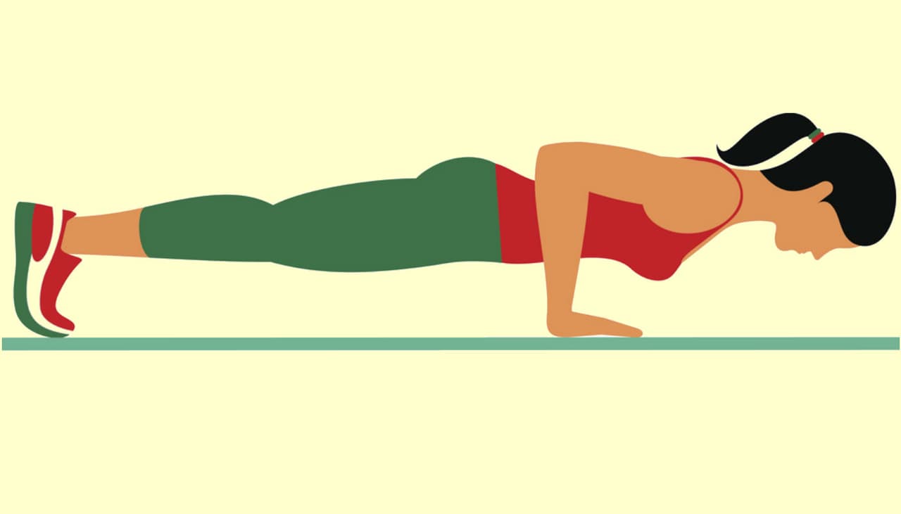 Para hacer la flexión correctamente, tienes que mantener las manos en la línea de los hombros, los codos extendidos, las palma de las manos apoyadas en el piso y las piernas estiradas. Haz el movimiento hasta una flexión de codos en 90º y vuelve al movimiento inicial.