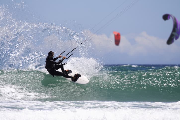 - Kitesurf: es como surfear, pero con un "barrilete" que te servirá de vela y hará que el viento te lleve, salvo que logres controlarlo...
