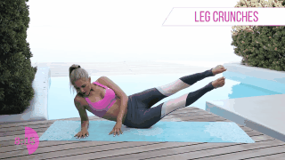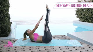 Acuéstate del lado y recarga tu peso en tu antebrazo y tu cadera, las piernas no deben tocar el suelo. Estíralas y contráelas por un minuto. Haz lo mismo del otro lado.