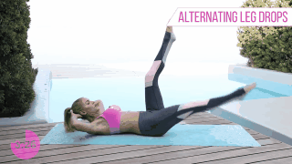 Levanta las piernas en un ángulo de 90º e intenta tocar tus tobillos con tus manos alternándolas en cada ocasión. Así: