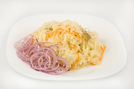 El chucrut de repollo o col en vinagre es un alimento con probióticos muy nutritivo. Puede ser un buen acompañamiento para tus ensaladas o para comer con hot dogs y cebolla.