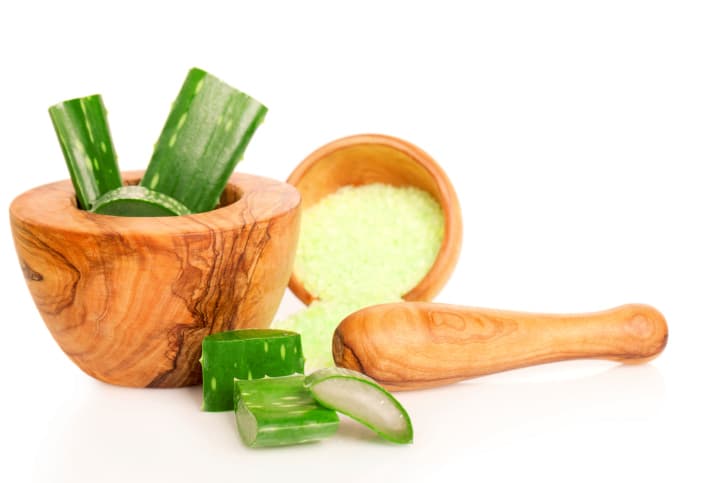 Para hacerla tú mismo, simplemente licúa la pulpa del aloe (rompe las hojas y verás qué carnosa es) junto con un poco de agua y azúcar para cortar el sabor amargo tan característico de esta planta. También puedes adquirir este extracto en forma de polvo o directamente en sacos de té en dietéticas y herboristerías.