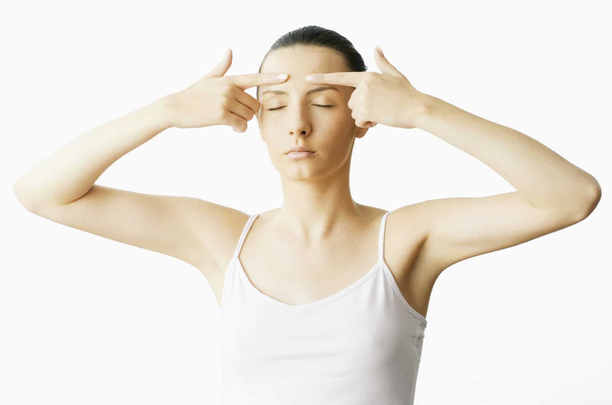 Realiza movimientos circulares y mueve en forma gradual, tus dedos hacia arriba hasta llegar a la línea del cabello en el centro de la frente. Al mismo tiempo, con ayuda de tus dedos pulgares, masajea tu frente y tu cuero cabelludo. Verás que pronto el dolor de cabeza será un mal recuerdo.