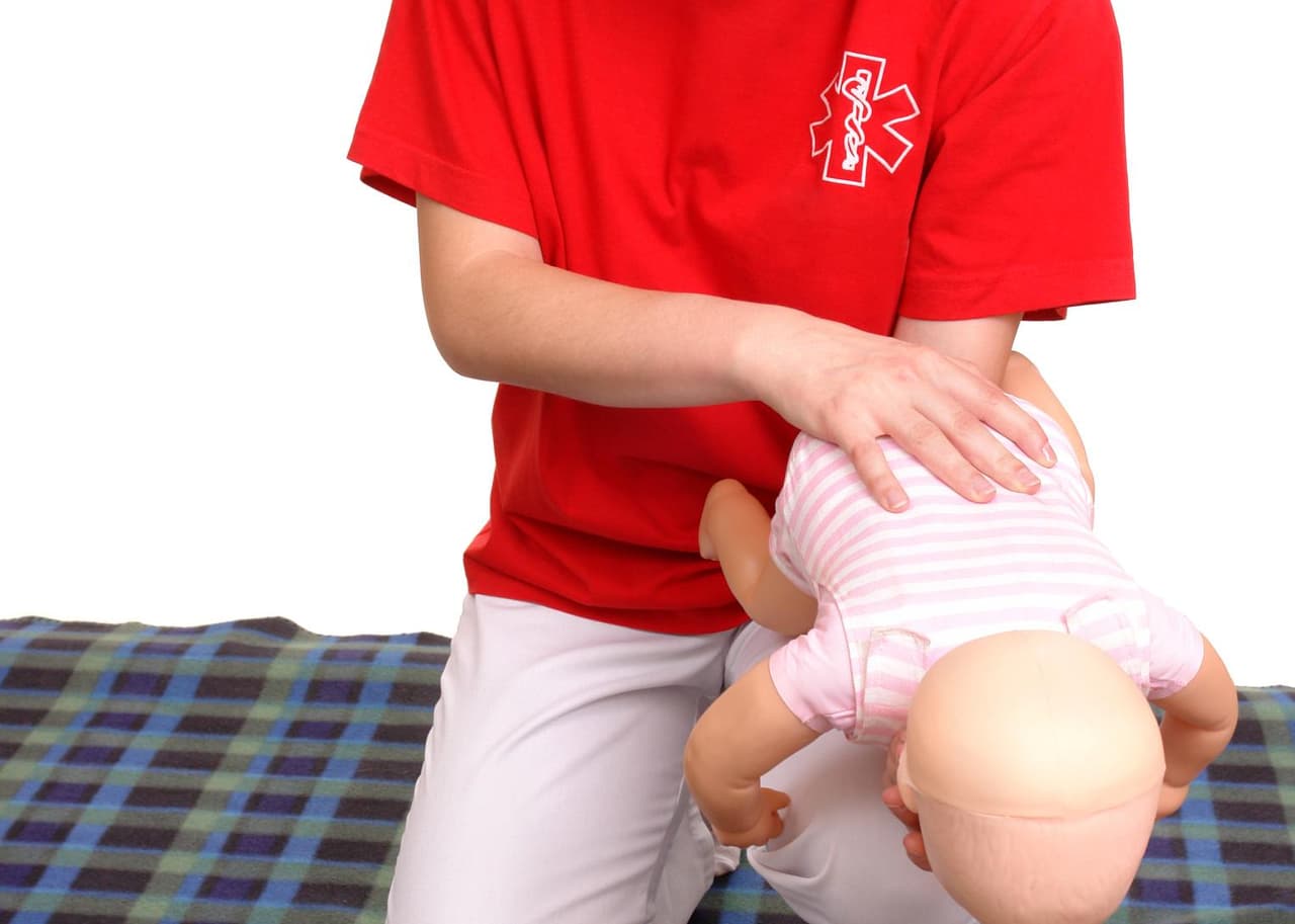 Si el pequeño es menor a un año, debes colocarlo boca abajo, sobre tus rodillas o antebrazo. Con la base de la palma de tu mano, aplica cinco golpes firmes entre los omóplatos. Si sigue sin respirar, acuéstalo sobre su espalda y coloca dos dedos sobre la parte inferior del esternón, justo debajo de la línea imaginaria que une los dos pezones. Realiza cinco compresiones rápidas.