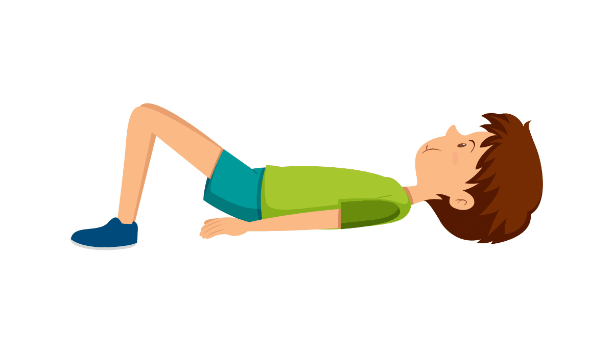 Ahora toma una colchoneta, pon la espalda al suelo y los brazos al costado del cuerpo, con las palmas de las manos hacia abajo.