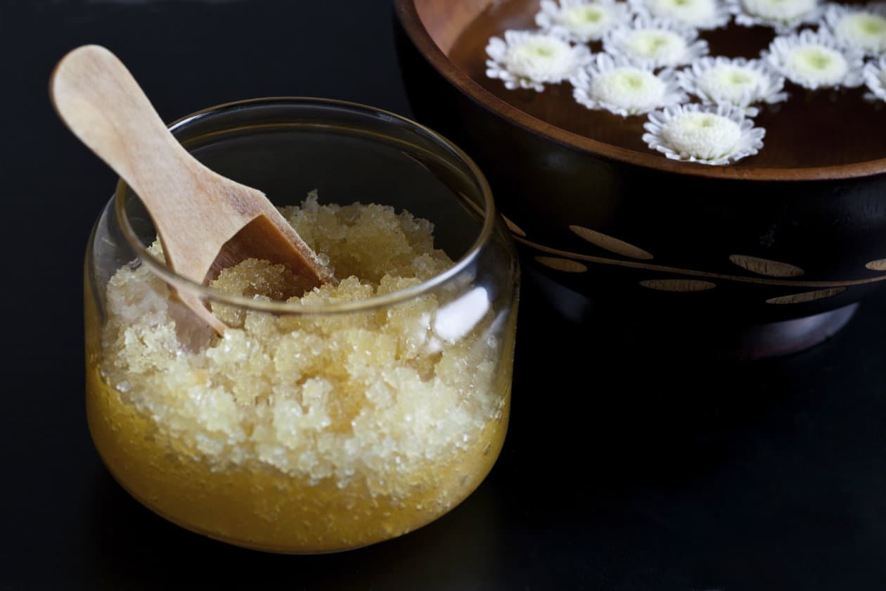 Para evitar que los talones se agrieten, se suelen aplicar exfoliantes para conseguir eliminar la piel muerta. Sin embargo, esos exfoliantes requieren que no esté la zona aún demasiado afectada, ya que si se tienen profundas grietas podrían picar y causar irritación. Si no es tu caso, un exfoliante natural muy fácil de hacer se consigue mezclando media taza de azúcar, con media taza de zumo de limón. La mezcla se extiende por la zona y luego se elimina con agua caliente.