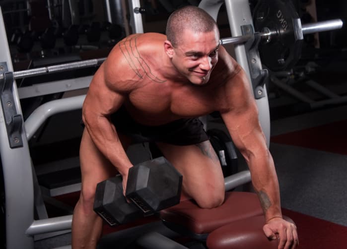 Otro ejercicio para estos músculos puedes realizarlo acostado boca abajo en un banco y tomando una mancuerna con cada mano y manteniendo los brazos estirados hacia el suelo. Sube los brazos hasta que los codos estén a la altura de tu torso sucesivamente trabajando tríceps.