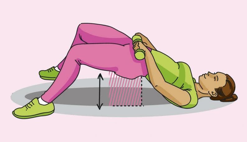 - Levanta la cadera haciendo forma de puente. Haz movimientos lentos de ascenso y descenso.