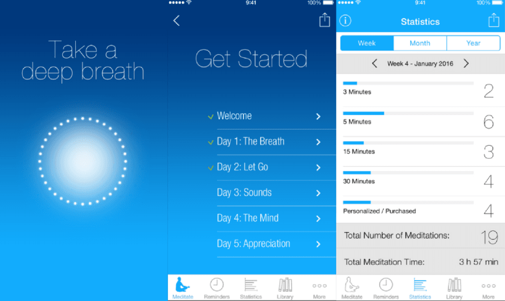 Es gratis, y es es una de las apps más accesibles para aprender a meditar, ya que ofrece una gran cantidad de ejercicios que van desde 3 minutos a 30 minutos.