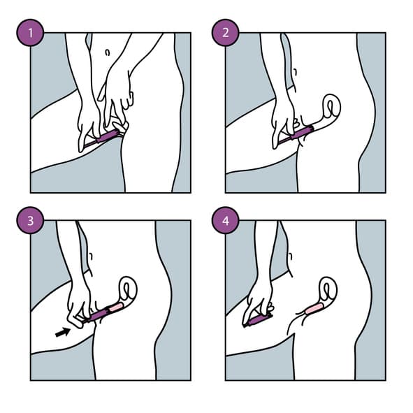 Tomá el aplicador por la mitad asegurándote de que el cordón quede afuera. Ahora relajate e insertá la punta redonda del aplicador en la entrada de tu vagina y empujalo hasta que tus dedos toquen tu cuerpo. Con el dedo índice empujá el tubo interior del aplicador hacia adentro. El tampón irá deslizándose poco a poco y al retirar el aplicador plástico, el cordón quedará colgando.