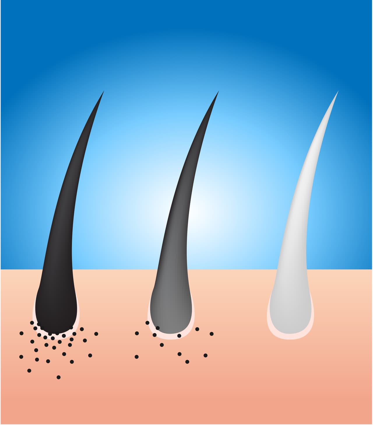 El cabello se vuelve gris cuando las células que producen el color dejan de crear pigmentos, explica el dermatólogo Jeffrey Benabio. Normalmente, este cambio ocurre a partir de los 30 años, pero varía en cada quién, influyendo también la raza.