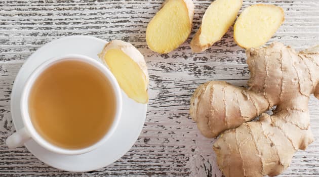 Haz té verde hirviendo las hojas y luego agrega la ralladura de jengibre y las rodajas de limón. Deja reposar durante 5 minutos, filtra y bebe.