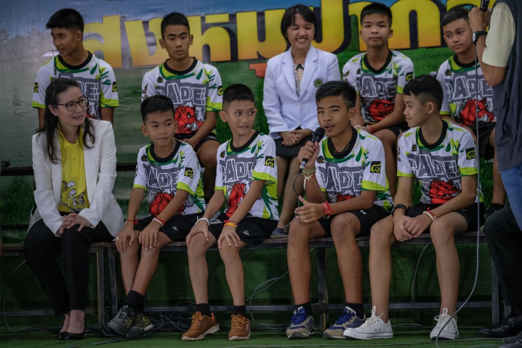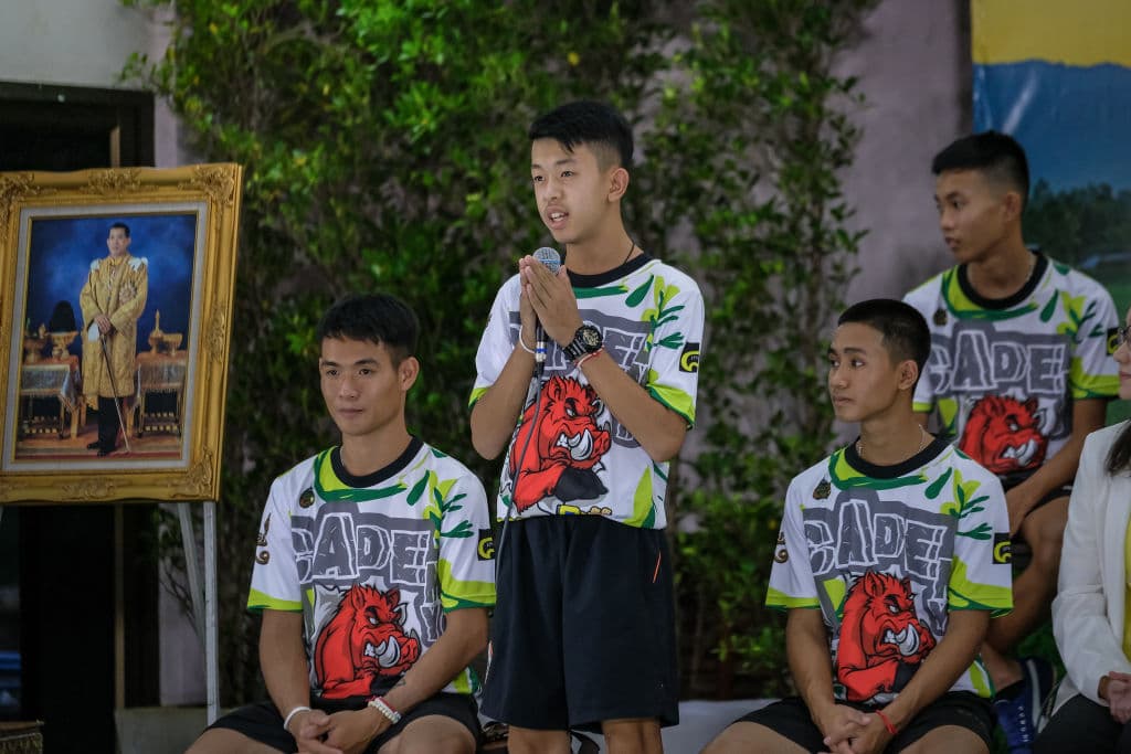 En la conferencia, los niños se mostraron unidos y con muchas energías. Hubo tiempo para las risas y también para conversar de forma seria y revelar lo que sintieron en la cueva. El primero en hablar fue Adul, el único niño de la cueva que sabía hablar en inglés y que pudo comunicarse con los rescatistas británicos. «Hola» fue lo único que pudo decirles cuando llegaron a la cueva. En la conferencia expresó que cuando los rescatistas llegaron, sintieron que era un «milagro».