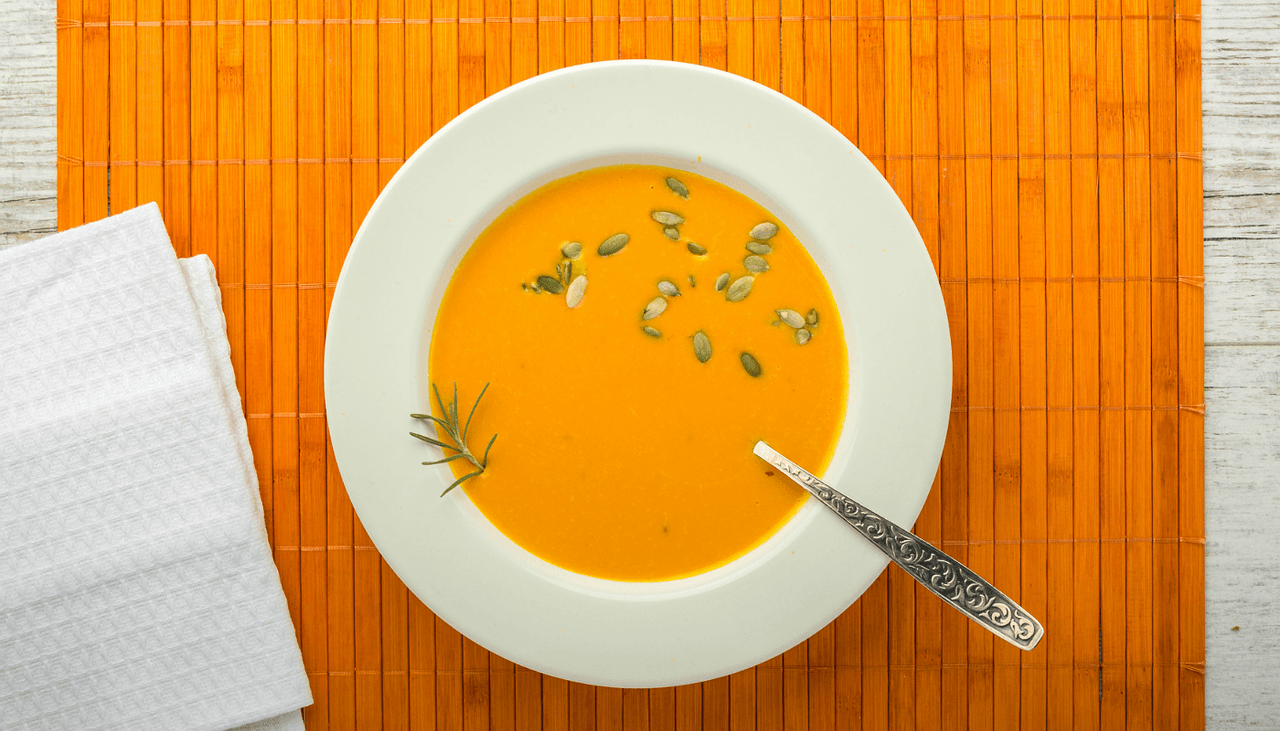 Esta sopa es una opción deliciosa, rica en betacaroteno y gingerol, dos importantes antioxidantes que contribuyen a la eliminación de radicales libres, enlenteciendo así el proceso de envejecimiento. La calabaza tiene un gran contenido de vitamina A, vitamina C, potasio y fibra. El jengibre tiene propiedades medicinales muy importantes; si se trata del tracto digestivo, van desde tratar el malestar estomacal hasta curar la indigestión crónica. Dado su efecto sobre la salud estomacal, asegurará que duermas bien, sin que la digestión sea un problema en el medio de la noche.
