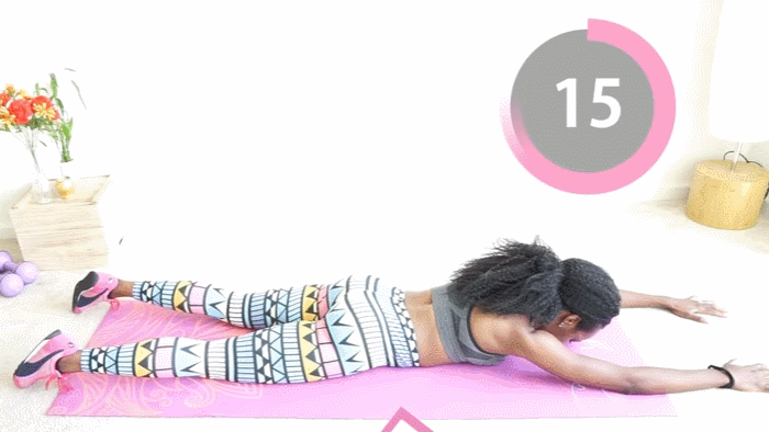 Boca abajo y con tus extremidades estiradas, levanta tus pies y manos sin doblar codos ni rodillas, sostén la posición un par de segundos y regresa manera controlada. Con tres sets de 10 repeticiones estarás bien.