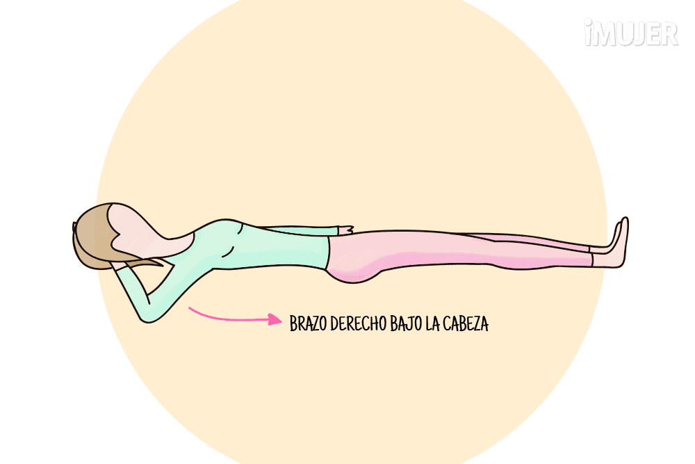 Así que túmbate en la cama boca arriba y coloca el brazo derecho detrás de la cabeza.