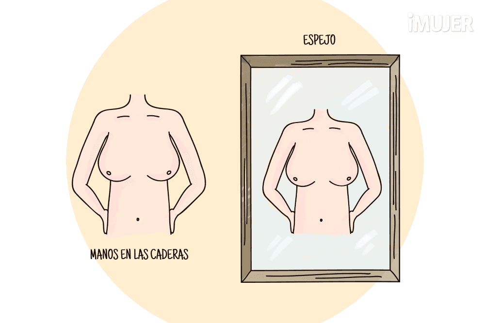 Sitúate frente a un espejo y apoya tus manos en las caderas. Observa tus senos desnudos buscando los siguientes signos...