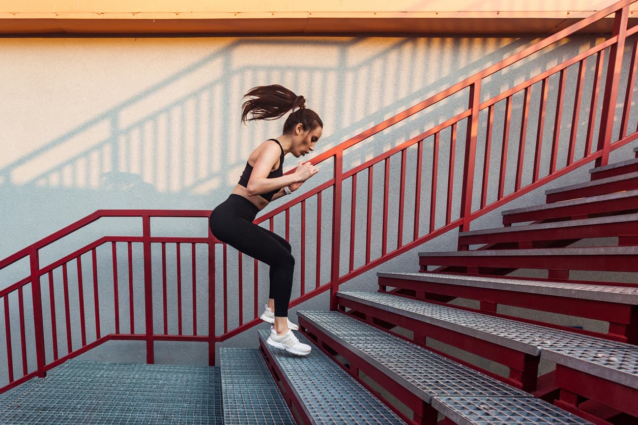 El movimiento de subir escaleras es uno de los más completos para trabajar las piernas, pues utilizarás los glúteos, pantorrillas, cuádriceps y femorales para ascender.