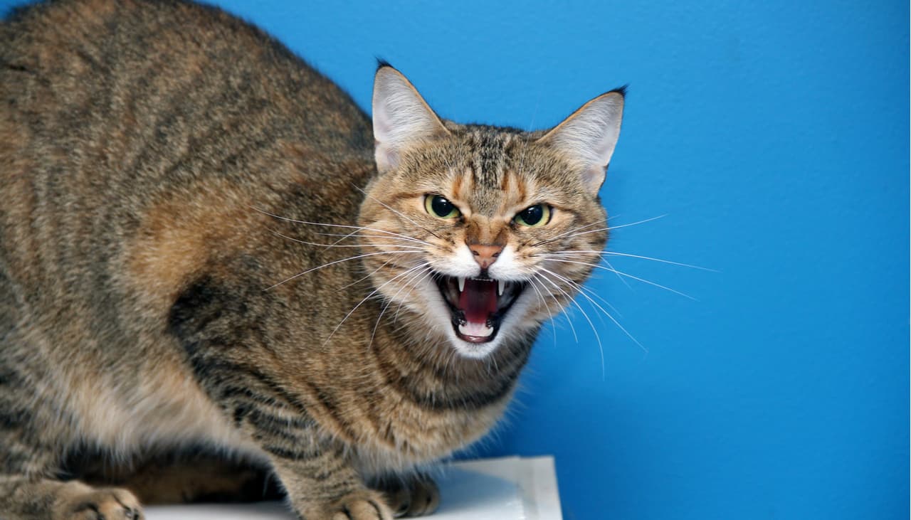 Si notas que arquea el lomo, eriza el pelaje de su columna o maúlla en tono alto y emite bufidos, te está indicando que debes alejarte antes de que suelte un buen rasguño. Ten cuidado.