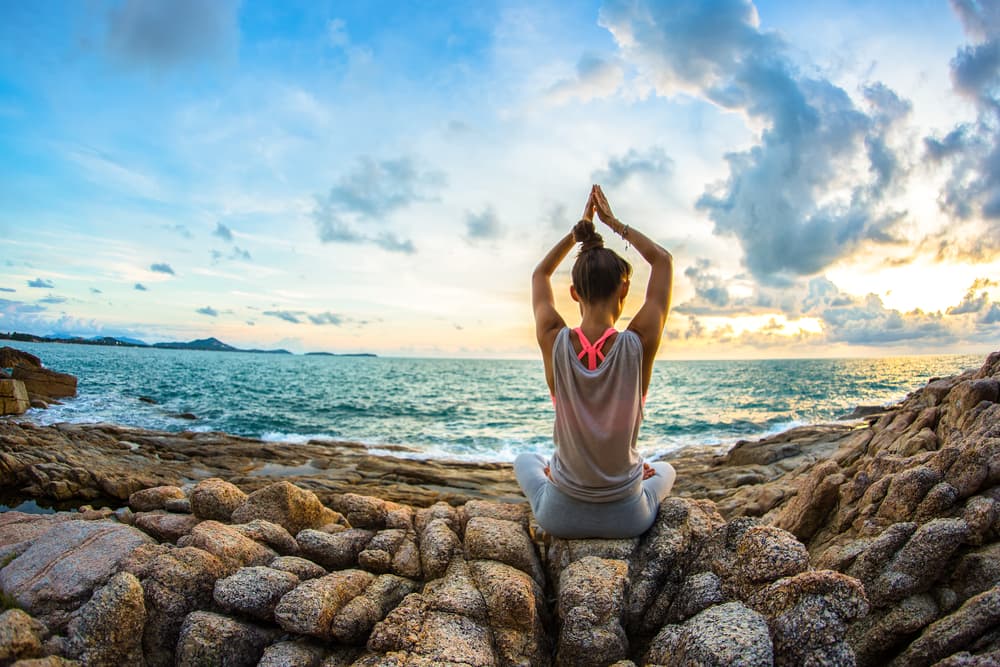 Busca un lugar cómodo y siéntate con la piernas cruzadas, eleva tus manos mientras inhalas y exhalas oprimiendo el abdomen. Es importante que cuando el aire salga de tu interior, las palmas de tus manos se encuentren totalmente abiertas.