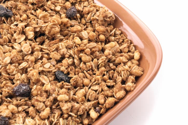 La fibra soluble contenida en la avena y en los frutos secos ayuda a eliminar de la sangre el colesterol malo. Cuando preparamos granola en casa, se recomienda añadirle un poco de semillas de lino, cuyo aceite aumenta los niveles de colesterol bueno en el organismo.