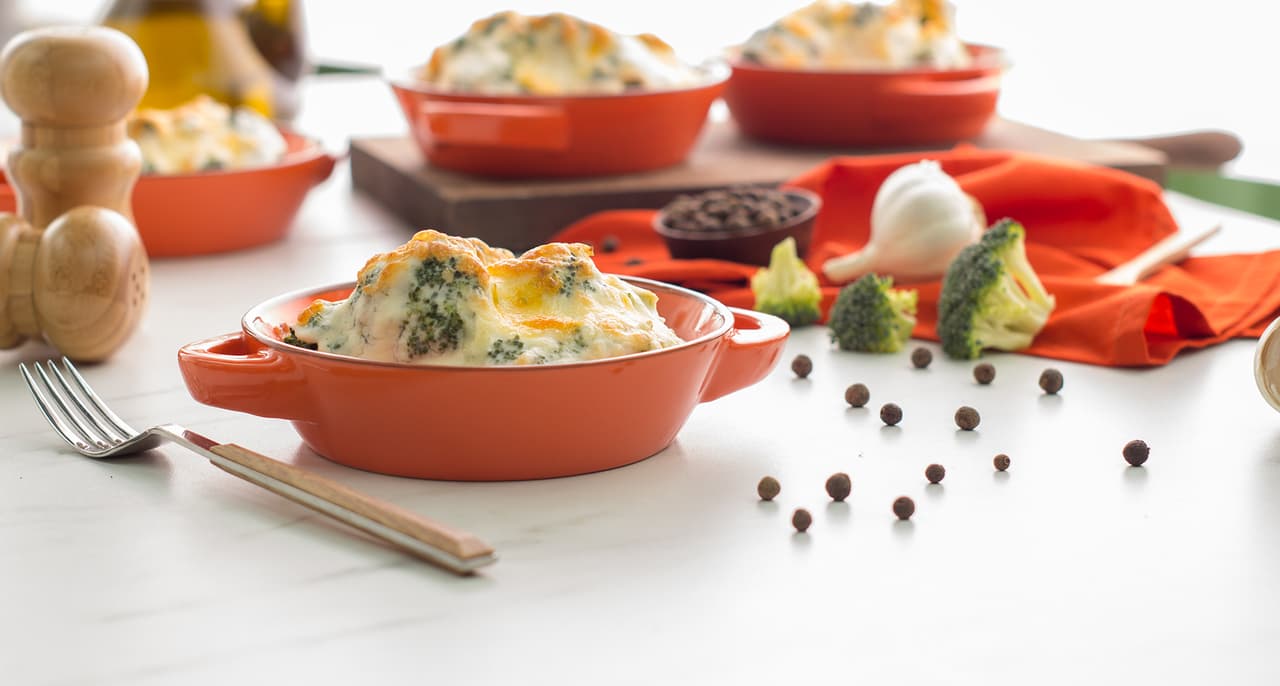 Hierve o cuece al vapor una papa pelada y algunas ramas de brócoli. Cubre con salsa de bechamel ligera y deja que se gratine con el calor de las verduras.