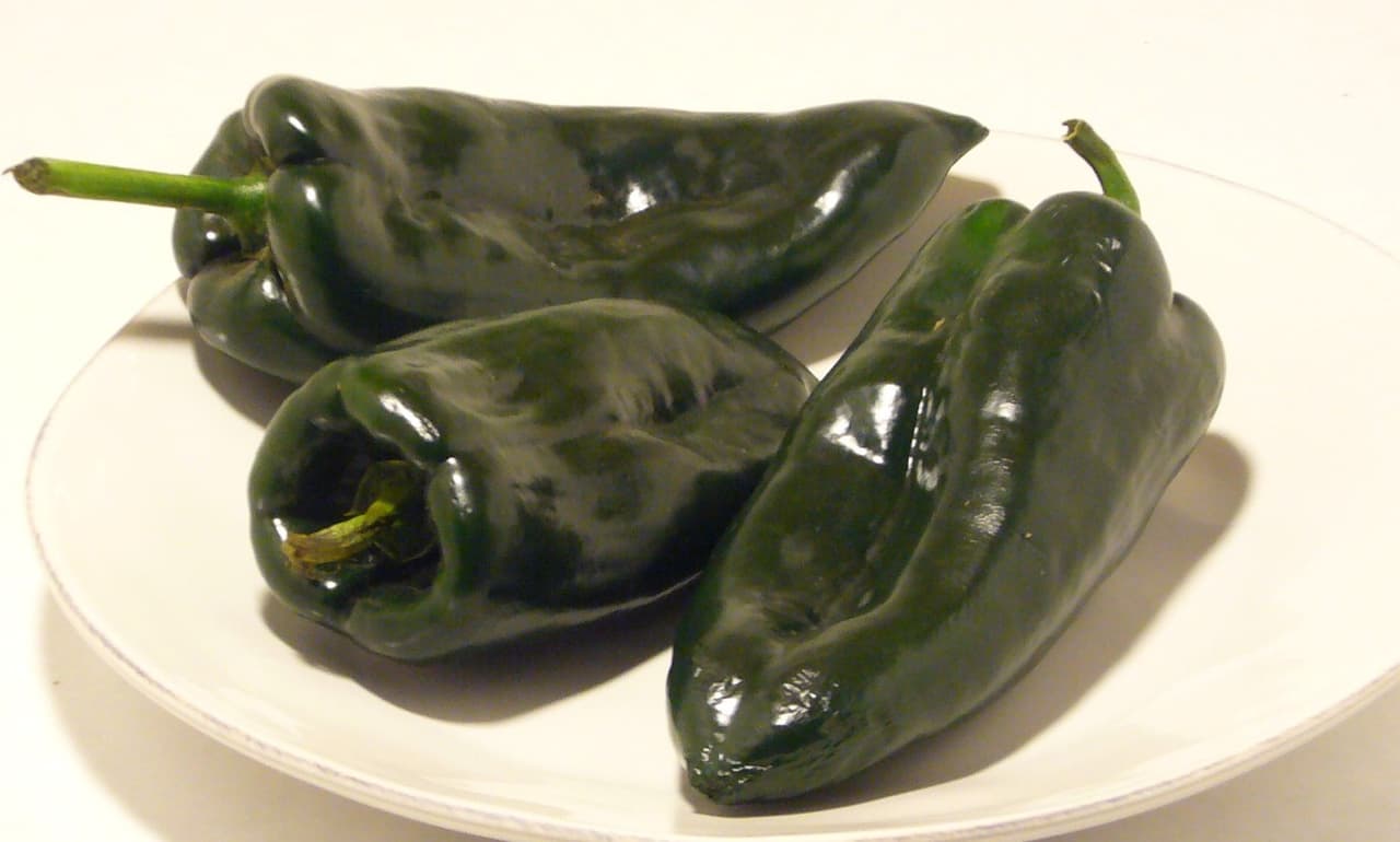 Para esta receta requieres de 1 chile poblano, cilantro, 1 mango, 6 cucharadas de queso crema, 1/4 de cebolla morada chica (fileteada), 2 cucharadas de mantequilla y 4 tortillas de harina. Pon a asar el chile poblano, hasta que la piel se haya dorado completamente. Mételo en una bolsa de plástico, cierra bien y déjalo reposar por 5 minutos.