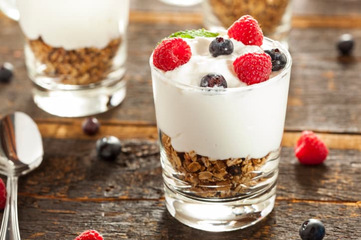 Puedes consumirlo en tu desayuno o merienda con frutas y cereales, y puede ser cualquier tipo de yogurt, pero si es griego, incluso mejor.