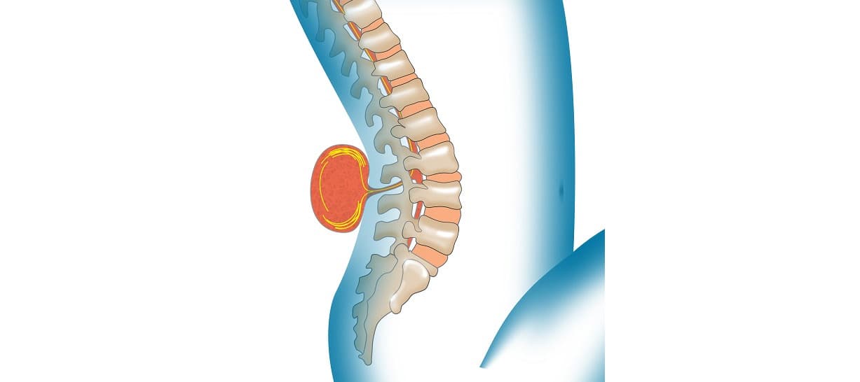 Al no formarse de manera correcta la espina dorsal, tanto las vértebras como la duramadre (la membrana más externa y resistente que cubre la médula espinal) provocan una protuberancia en la que se acumula una cantidad excesiva de líquido cefalorraquídeo.