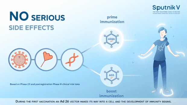 Los científicos rusos sustrajeron una pequeña parte del coronavirus, en específico el gen que codifica la proteína S, y lo introdujeron en dos vectores adenovirales diferentes: Ad26 y Ad5, lo cual ayuda a tener una respuesta inmunitaria mucho mejor.