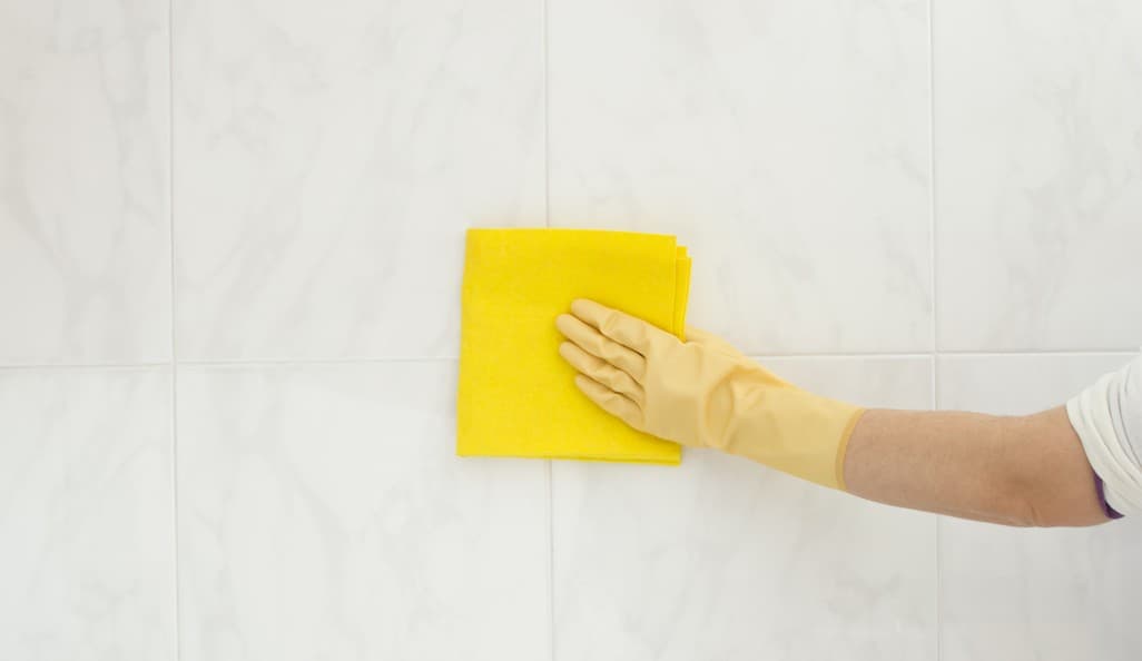 Después de rociar una pequeña sección de azulejos, utiliza una esponja o paño para difundirlo. Espera unos minutos para que la fórmula penetre en la superficie y, a continuación, limpia o enjuague la superficie.