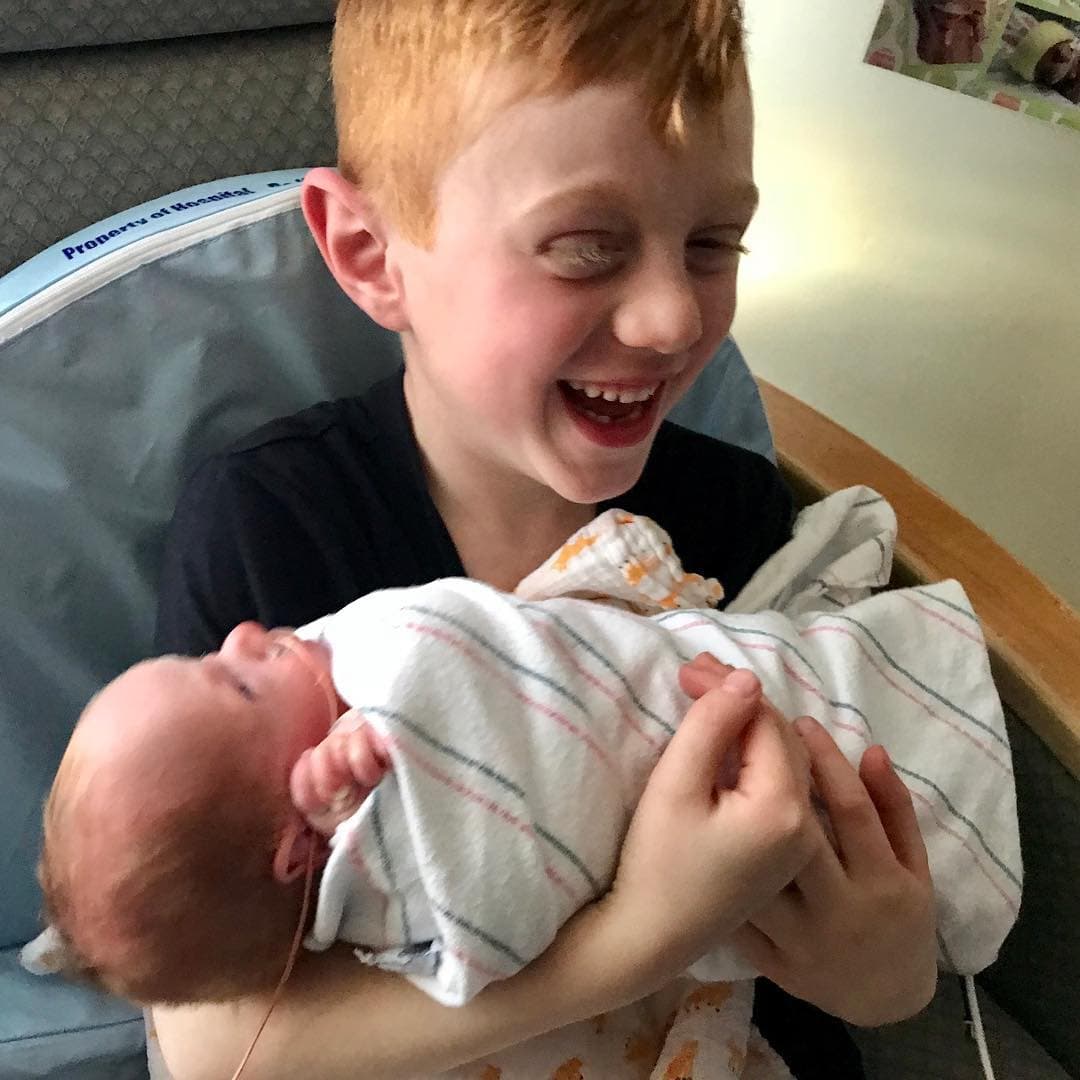 Un niño pidió un hermano por años y lo cuidó como un héroe cuando nació prematuro